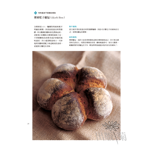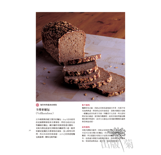 這本由日本超人氣麵包店Zopf 負責人-伊原靖友主廚所著-『麵包新趨勢-裸麥麵包專書:Zopf烘焙的裸麥麵包』,鉅細靡遺的以多年教學的經驗與專業角度,傳授各種關於裸麥麵包的知識與學問,從裸麥粉、酸種培養、各種裸麥粉比例的配方、整形烘焙的訣竅,到如何品嚐裸麥麵包、搭配佐餐…等等既具體又實用的傳授所有關於裸麥麵包的所有知識。