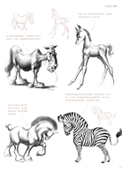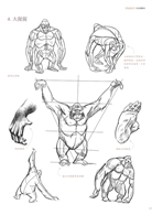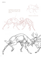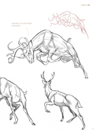 首先,用理性而客觀的眼光去觀察它們,學習每一種動物的形體結構以及骨骼肌肉解剖,抓住它們的外形特徵。然後,我們就可以讓它們動起來了,認真觀察,仔細研究每一種動物的運動規律和動態特點,注意這些動態與它們的生活習性密切相關。最後,在我們熟練掌握這些動物的畫法之後,可以將其漫畫化。這一部分需要我們有更加豐富的想象力和扎實的基礎知識,因為你得透過對動物特徵的誇張而創造一個漫畫形象。而這樣也就要求你要更多地認識和瞭解動物的顯著特徵,這樣能幫助你更精確地去再現。在這個過程中,寫實與誇張是相輔相成的兩種學習方法。