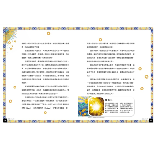 .穿插與神話情節有關的歷史、文化或自然現象。書末附有希臘地圖及發展年表等,讓你一目了然,輕鬆踏入奇幻多彩的希臘諸神世界
