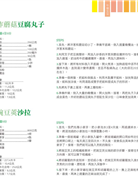 每道菜都列出材料和分量,搭配詳細步驟圖,分析熱量和營養成分,能夠按照全家人的食量和人數,分配三餐菜色。