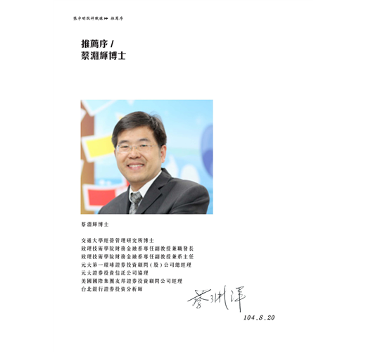 此書內容所談,都是用最簡單的話語告訴投資人該怎麼做,看似簡單,但實際上都是許多實戰的寶貴經驗。若讀者能多了解,而此能融入自己的操盤紀律上,相信未來會有不錯成績,也是此書能付諸大眾的最大心願。祝福所有投資人,一切平安順利,豐收滿滿。