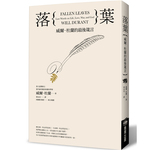《落葉》是杜蘭畢生最個人的書寫,書中縱論各種課題,從人的年輕、老年,到宗教、道德、性愛、戰爭、政治和藝術。是杜蘭鑽研哲學、宗教、藝術、科學和世界各大文明六十多年的結晶,表現著一位非凡學者的最高智慧,向世人展現出歷史足資為今日所借鏡。