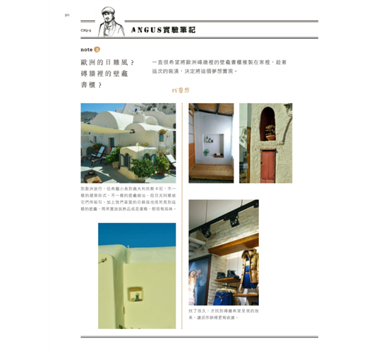 原本以租屋為主的安格斯,在擁有了自己的房子之後,一直熱愛為家人打造舒適居家空間的他,便開始更用心 地一點一滴佈置自己的家,不找設計師,是因為沒有人比自己更了解全家的需求,什麼都要自己動手做,是因為任何東西經過他的手,有了更多可能性,雖然過程中有辛苦有遺憾,但也有更多完成後的喜悅。