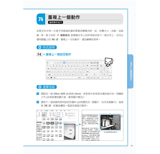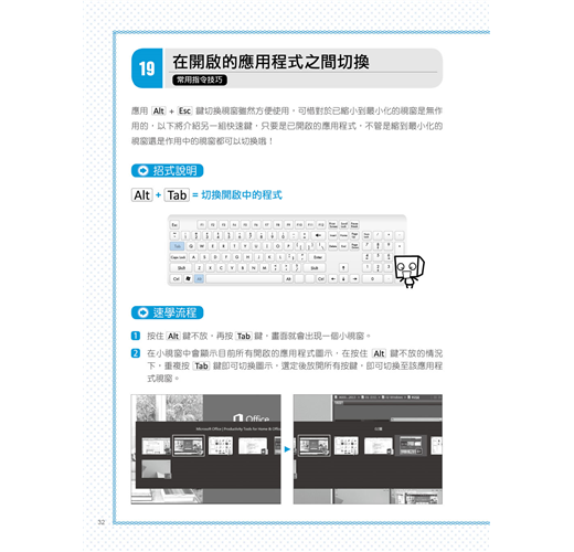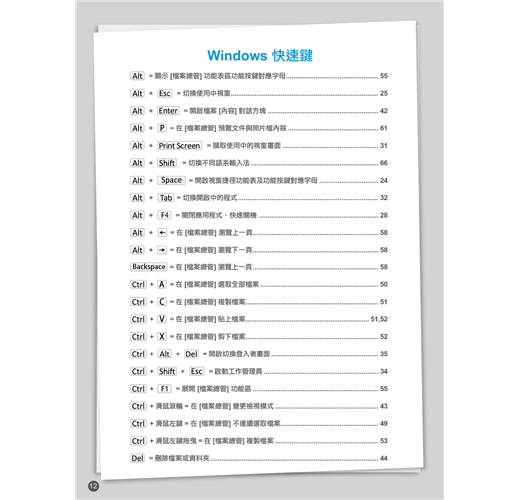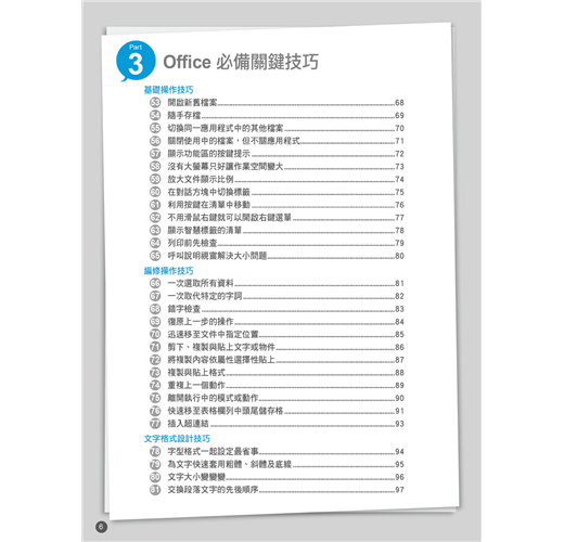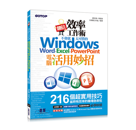 將 Windows、Office、Word、Excel、PowerPoint常用功能整理分類,搭配按鍵說明讓你3秒學一招。當別人還在功能選單中摸索時,你已經完成報告休息去了!