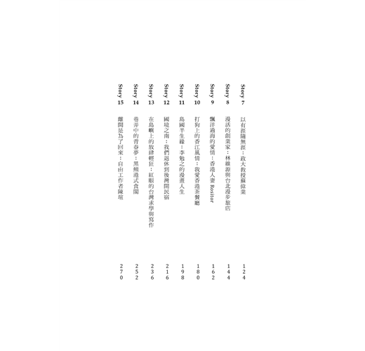 ◎這本書的故事,不只是說台灣故事,也是說香港的故事。台港互為對照,呈現兩地正在發生的歷史。