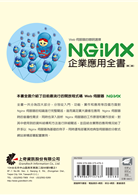 全書一共分為四大部分,分別從入門、功能、實作和應用等四個方面對Nginx伺服器的知識進行完整闡述,進而滿足廣大讀者在應用Nginx伺服器時的普遍性需求。同時也深入剖析Nginx伺服器的工作原理和實作技術,對其中使用到的資料結構和方法進行詳細闡述,並且結合實際的應用情況給了許多以Nginx伺服器為基礎的例子,同時還有部署其他典型伺服器的分散式網站架構部署配置實例。