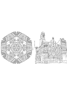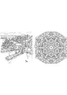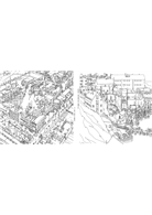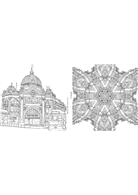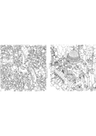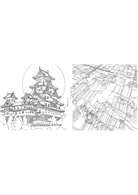 鳥瞰視角建築景觀著色畫與曼陀羅