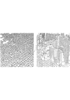 城市線條繁複細膩,在著色過程中,彷彿和鳥瞰視角並列飛行,啟發深層冥思,在五光十色的街景迷宮中,找尋到生命的出口。