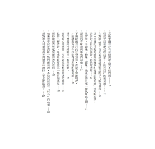 在我們苦心推敲研究的結果下,希望能教授給讀者最簡單的選酒方法。和市面上常見的葡萄酒教科書不同,我們想教導大家學會如何興味盎然、果決瀟灑地選出正確的酒,確認自己喜歡的口味是什麼,再來親自體驗看看。