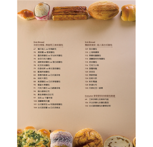 ◎ 善用台式麵包的特點,教您3種基本麵團作法,直接法、中種法、湯種法,活用麵團特色與製作、內餡變化,做出各種不同款式麵包!