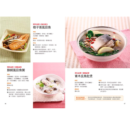 ●鯛魚蒸蛋 ●果香咖哩魚片 ●鯛魚糙米粥 ●鮮魚燕麥粥