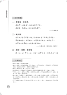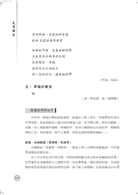 三、 本書之體例,以【教學目標】、【學習重點】、【學習單元】、【文本閱讀】、【賞讀與情意反思】、【小辭典】、【提問活動】、【延伸閱讀】、【參考書目】為主,其中【賞讀與情意反思】,筆者將以流暢通俗白話解析,或有引用既有研究成果,也有個人與文本的對話或教學心得;又有文本的技巧和情意傳達情韻,其中「小辭典」以維基百科或教育部國語辭典網站或漢典搜尋為主;【提問活動】、【延伸閱讀】、【參考書目】測驗學生對文本整體內涵理解,同時增進學生課餘閱讀廣度。