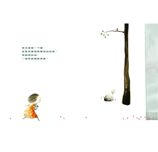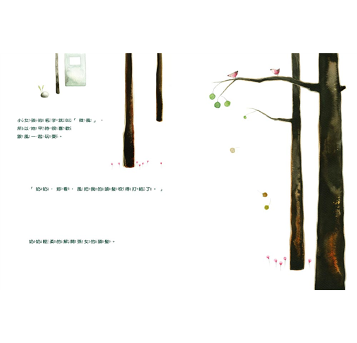 小女孩的名字叫作「微風」,因此她平常就很喜歡和風一起玩耍,每當學校一放學,她就會飛奔到奶奶家,任憑一頭長髮隨風飛揚。