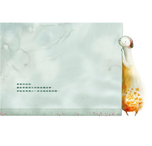 奶奶說的話,微風聽不太懂,可是字字句句感覺起來好輕柔,彷彿漂浮在半空中。微風就這樣睡著了。