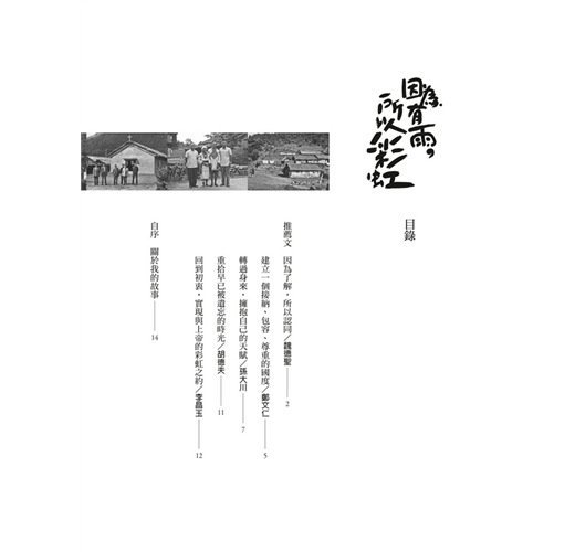 期待《因為有雨,所以彩虹》的出版讓更多人得到鼓勵,更願台灣的每位住民都認同台灣這個美麗的寶島,不分族群,不分地域,彼此接納、包容、尊重,建立一個在地上如同在天上的國度。