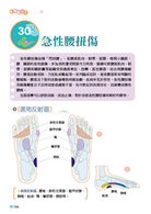 2. 列出61種常見疾病,每種疾病詳列「症狀表現」,詳細圖解「病理反射區」,再進行「穴位按摩」的手法,並輔以「中醫外用方」,讓讀者在尋找病症、找對反射區,進而改善病因。