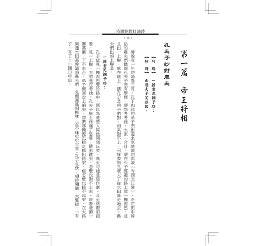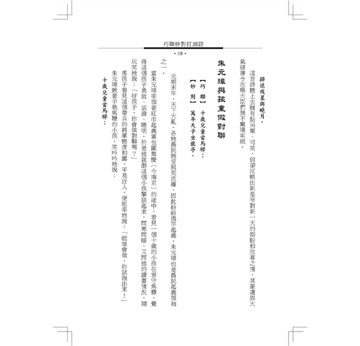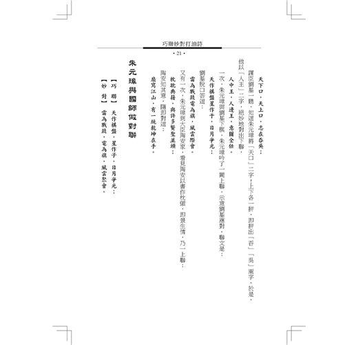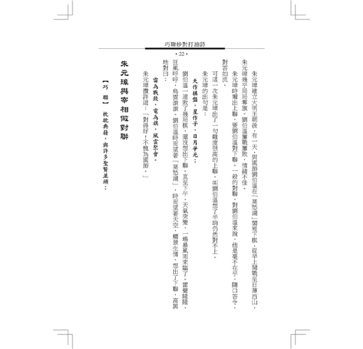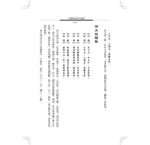 書中的巧聯妙對或對聯故事,無論其出於正史、野史,還是民間傳說,都極具知識性和趣味性。
