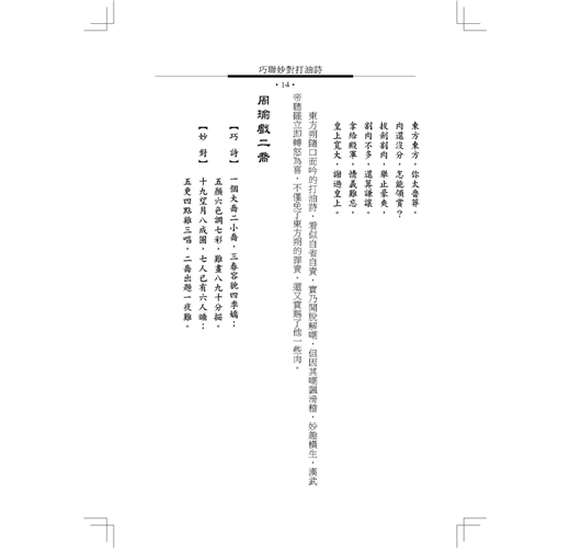 《巧聯妙對打油詩》文辭優美、活潑俏皮、語意精練,可謂一般大眾學習傳統文化的知識庫之一。