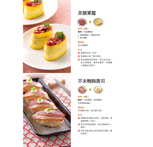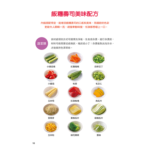 專業老師撰寫,從基礎到變化,圖文示範,製作壽司醋、拌醋飯一點也不難,飯糰壽司種類多樣,適合每個人口味,口感零距離,接受度高!
