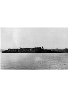水霧及烟塵迴盪在島內,夜晚之靜寂包覆整座腐朽的海上都市廢墟。