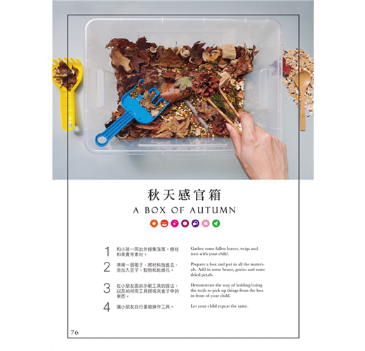 ☆讓孩子搜集落葉、樹枝和果實等素材,創造秋天感官箱→學習社交力、擁有感恩的心等
