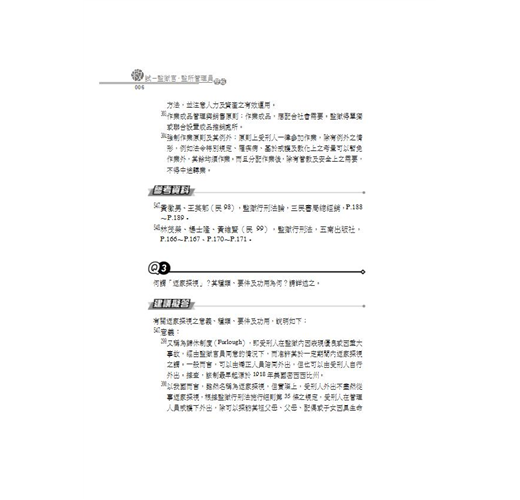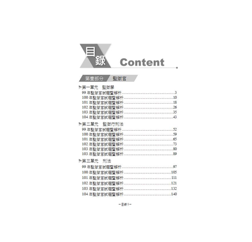 本書詳盡收錄99~104年監獄官與監所管理員考試之所有科目,精準的建議擬答,並提供當前各科權威老師之教科書及文章做為參考資料,涉及修法問題也以貼心的編按方式清楚說明,完整提升作答實力與技巧。