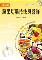 坊間蔬果切雕的書籍並不少見,但多數往往是作者們展示作品與成果所發表,其中收錄的作品多十分繁複華麗,令觀者驚歎,視為鬼斧神工。也因此,蔬果切雕往往給人的印象是高人力成本,或是學習者需要有美術天分,讓許多開始學習蔬果切雕的學生望而生畏。其實,只要學習得法,掌握訣竅,就能事半功倍。這本給初學者的「蔬果切雕技法與盤飾」讓讀者了解到蔬果切雕不一定需要技藝超群的雕工,在巧思與創意之下,即使只是簡單的直線組合,也能讓用餐者為之驚喜。