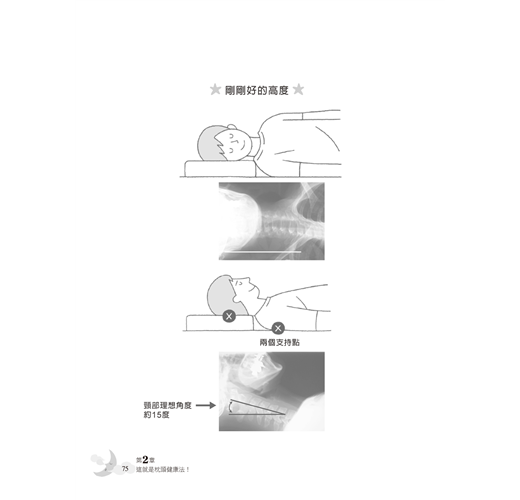 「優良枕頭」的三大要件1、剛剛好的高度。仰躺時頸部與床面的角度約為15度左右,側躺時也要調整肩膀寬度與頸部的高度,讓身體呈現最自然的姿勢。