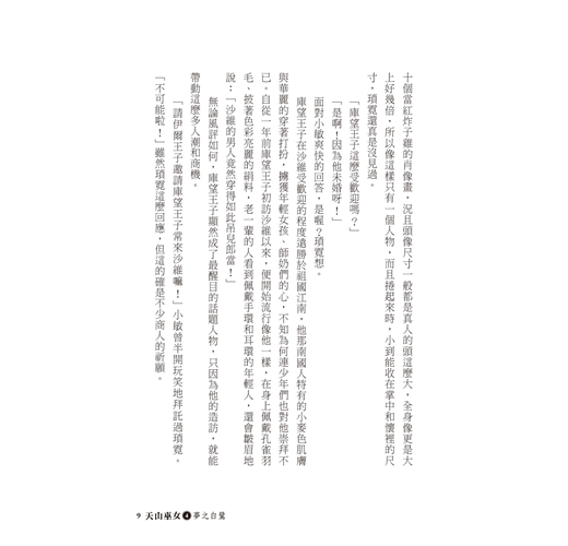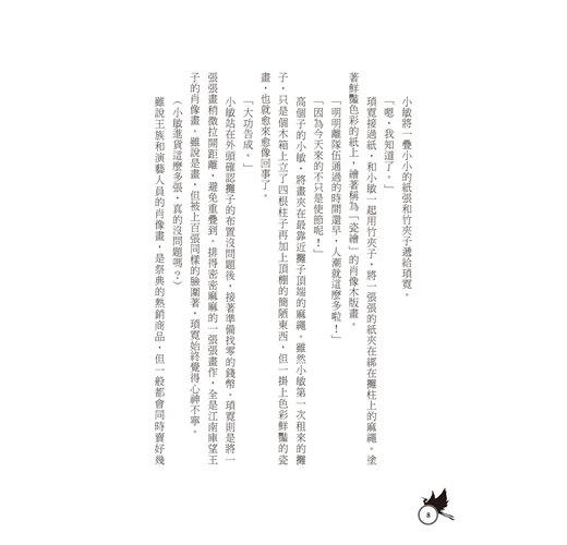 小敏站在外頭確認攤子的布置沒問題後,接著準備找零的錢幣。瑣霓則是將一張張畫稍微拉開距離,避免重疊到。排得密密麻麻的一張張畫作,全是江南庫望王子的肖像畫。雖說是畫,但被上百張同樣的臉圍著,瑣霓始終覺得心神不寧。