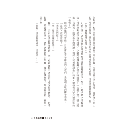 ★ 「沙維的伊爾王子、江南的庫望王子、巨山的耶拉公主,三國的年輕王族在這一集中第一次全員到齊了!如果三國之間的平衡局面被打破了,各自會產生什麼樣的變動呢?這是一本奇幻青少年讀物,但這不僅僅是一本描述美好事物與少女心事的故事,更包含了政治、經濟、戰爭與天災等元素。」────豆漿熊