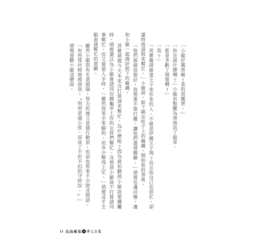 ★ 「沙維的伊爾王子、江南的庫望王子、巨山的耶拉公主,三國的年輕王族在這一集中第一次全員到齊了!如果三國之間的平衡局面被打破了,各自會產生什麼樣的變動呢?這是一本奇幻青少年讀物,但這不僅僅是一本描述美好事物與少女心事的故事,更包含了政治、經濟、戰爭與天災等元素。」────豆漿...