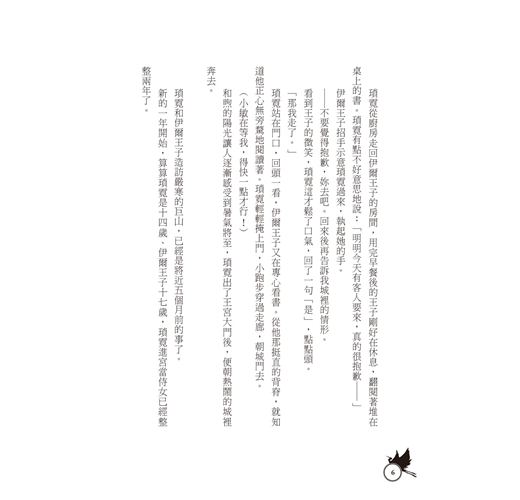 瑣霓站在門口,回頭一瞧,伊爾王子又專心看書。從他那挺直的背脊,就知道他正心無旁騖地閱讀著。瑣霓輕輕掩上門,小跑步穿過走廊,朝城門去。