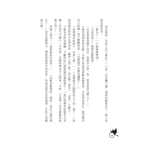 「妳來啦!瑣霓。」邊這麼說,邊從攤子裡鑽出來的是瑣霓重返俗世後,最初也是最要好的朋友小敏。
