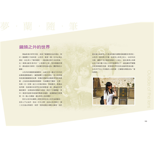二、每個章節增加「夢蘭隨筆-鏡頭之外的世界」,由舒夢蘭親自執筆,分享電視節目上沒播出過的獨家精彩畫面內容。
