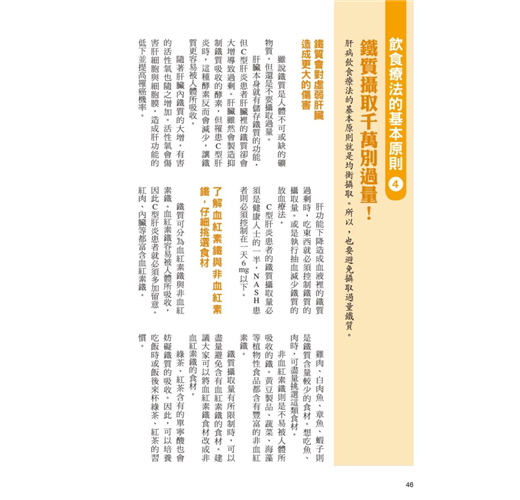 提供肝病患者飲食指南,有效攝取優質蛋白質、富含膳食纖維的蔬菜及減少傷害虛弱肝臟的鐵質攝取。
