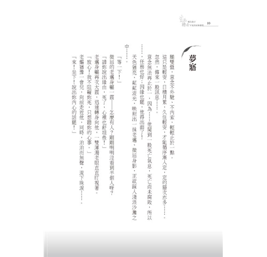 「啪─。」宛如雷鳴,含笑嚇一大跳,脖子隨之一輕,面前一隻長方形大桌,上面坐了個威冷的人,問她為什麼要自殺?自殺罪很重的啊!