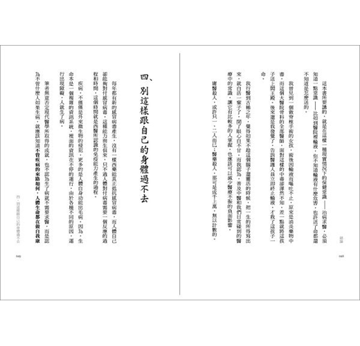 讀這本書,遠勝過讀百本醫學保健書;因為它將告訴你生理和病理的基本原理、身體和生命的關鍵關係,以及醫生、醫藥和醫病之間的許多誤解、誤診和誤治,而這才是我們真正的保健初步。