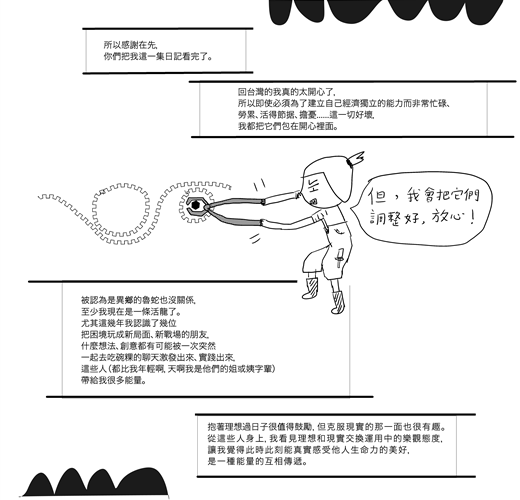 寫了十八集交換日記後,妙如發現:「寫作很好,是一種療癒,在我看過交換十六、十七後。我覺得今年是個好年,慢慢洗淨我的傷疤,讓我雙靈合體,回到中性⋯⋯」