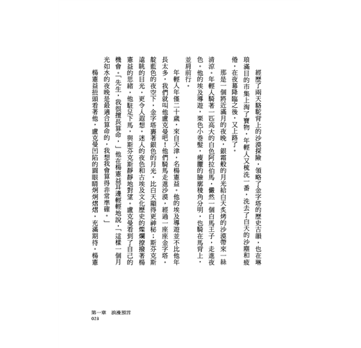 經過了一座座的金字塔,一個月光如水的夜晚,埃及導遊對楊憲益下了預言:「我看到一片水,是地中海,是大西洋;我看到一個英國女郎,在水一方,金髮碧眼,向東方眺望,她正為你而憔悴。」……