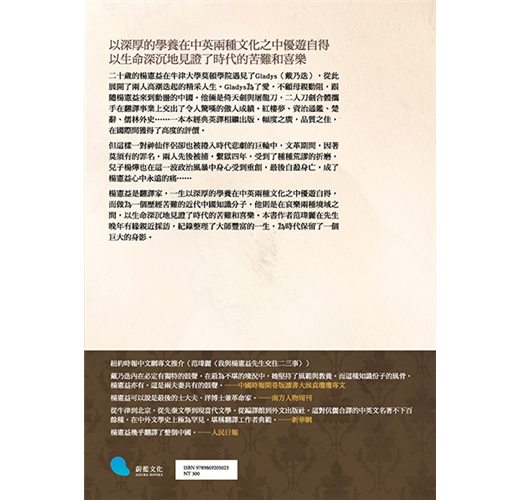楊憲益是翻譯家,一生以深厚的學養在中英兩種文化之中優遊自得,而做為一個歷經苦難的近代中國知識分子,他則是在哀樂兩種境域之間,以生命深沉地見證了時代的苦難和喜樂。本書作者范瑋麗在先生晚年有緣親近採訪,紀錄整理了大師豐富的一生,為時代保留了一個巨大的身影。