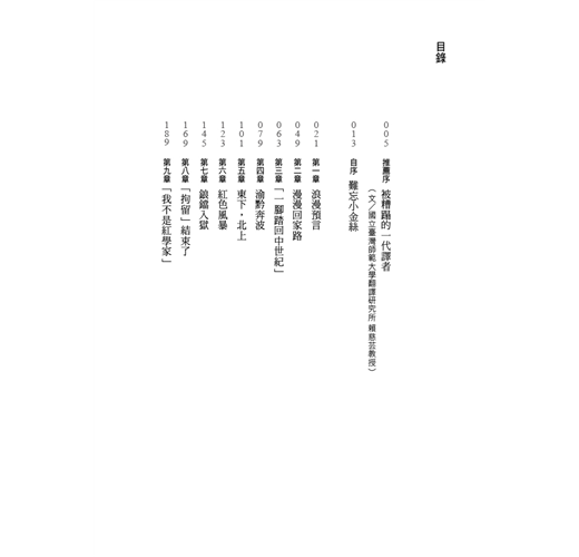 文學翻譯必有譯者,而譯者是活生生的人,必有其歷史背景、機運、喜好、包袱、感情與局限。因此談翻譯不能不談譯者。遺憾的是,因為政治的扭曲,我們過去有很多不能提的譯者。出生於二十世紀初的一輩譯者,命運之多舛實難想像:如果一九四九年留在大陸,就會遇到文革,而且譯作往往被台灣盜用數十年,也無人正名;如果來台,固然可以逃過文革,但也可能一輩子還鄉無望。今天看到這樣一本譯者的故事,多少彌補了一點遺憾。也希望未來能看到更多譯者的故事,對一代生命被糟蹋的譯者前輩致敬。