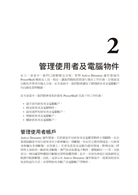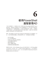 •PowerShell 的進階管理技巧,例如,升級/降級網域控制站、檢查 Active Directory 複寫機制、建立更細緻的密碼原則、FSMO 五大角色的轉移/取回……等詳細資訊。
