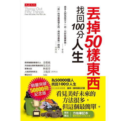 「不過蓋兒,」她一臉憂心的說:「我還是得再扔掉49樣東西嗎?」「今天先這樣就好,這禮拜妳好好休息,我相信妳很快就能扔掉剩下的49樣東西!」好,現在該你了,準備開始大丟特丟吧!