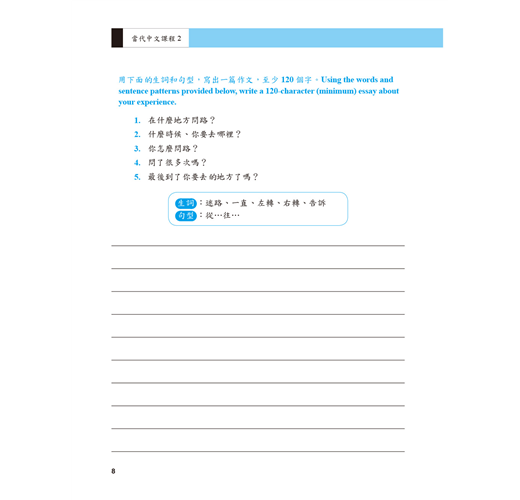 This six-volume series is a comprehensive learning material that focuses on spoken language in the first three volumes and written language in the latter three volumes. Volume One aims to strengthen daily conversation and applications; Volume Two contains short essays as supplementary readings; Volume Three introduces beginning-level written language and discourse, in addition to extended dialogues. Volume Four uses discourse to solidify the learner’s written language and ability in reading authentic materials; Volumes Five and Six are arranged in topics such as society, technology, economics, politics, culture, and environment to help the learner expand their language utilisations in different domains.