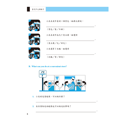 A Course in Contemporary Chinese 《當代中文課程》 is suitable for learners of Chinese in Taiwan, as well as for high school or college level Chinese language courses overseas. Volumes One to Six cover levels A1 to C1 in the CEFR, or Novice to Superior levels in ACTFL Guidelines
