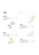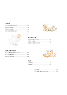 除了介紹24款溫馨可愛的寶寶衣飾、配件、玩具外,本書還貼心的為媽咪們收錄迎接寶寶時,必備的「神祕箱」,哪些東西要放入神祕箱中呢?除了盥洗包、寶寶的日常換洗衣服,還有寶寶和媽咪平常不可或缺的所有物品,都在書中完整呈現。
