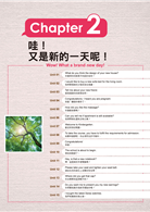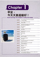 單元標題就是開啟聊天話題的那把鑰匙。透過關鍵句查找,光是看目錄就能找到相對應的情境對話,腦內馬上知道下一句該接什麼。遇到老外完全不會手忙腳亂,悠哉對應各類情境。