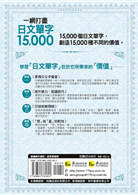 字彙量的累積非一朝一夕能完成之事,唯有持之以恆,並善用《一網打盡日文單字15,000》中所列舉的單字、同反義字、相似字及相關補充字彙,扎實地奠定屬於自己的日文字彙庫。