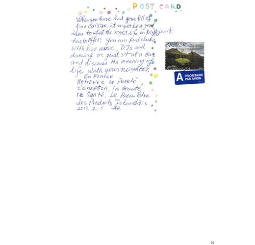 這不是一個人寄出去許多明信片的紀錄,而是許多人寄回來一張張明信片的故事。書中的明信片得來不易,帶走明信片的人必須記得出發時在行李箱中放進這張卡片,必須讓它跟著遊歷千百里、橫渡萬重洋,必須記得到了目的地貼上郵票寄它回來──而它還不一定回得來。