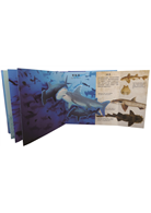 ※側邊頁面詳細解說鯊魚的的身體構造、生命週期、棲息地、適應與演化…等,除了立體書之外還是鯊魚小百科